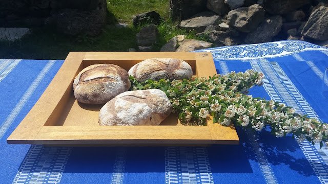 assadas no forno em pleno campo, acompanhadas de pão caseiro, vinho e