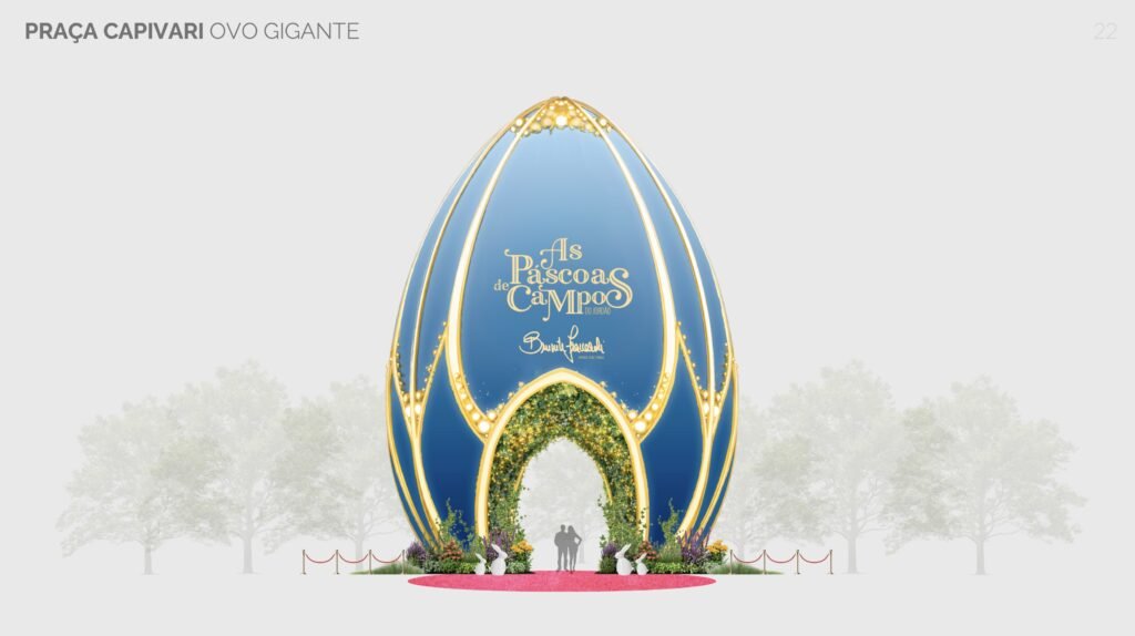 Mas, o destaque do evento mesmo promete ser o ovo com 20 metros de altura, que será instalado no Capivari, poderá ser visitado por dentro (todo decorado com tapete rosa) e a turma por lá já diz que ele tem a pretensão de se tornar o maior ovo de Páscoa do mundo.
