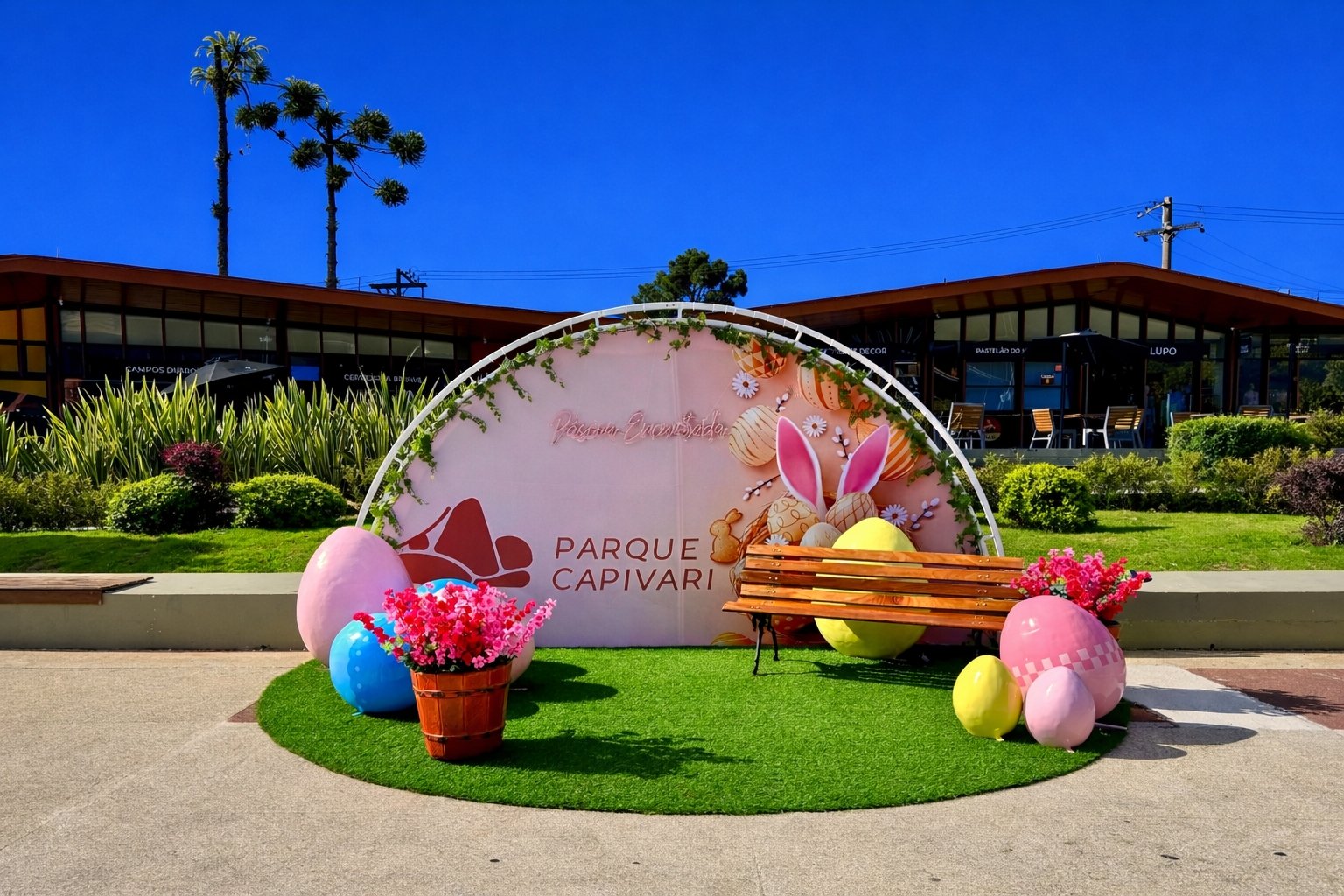 A decoração ganhou um coelho iluminado de 4 metros de altura e um ovo cenográfico de 5 metros. E durante todo o mês de março, o palco do Capivari recebe programação gratuita, com música, espetáculos culturais e eventos esportivos
