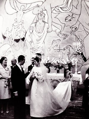 Ela se casou, em maio de 1960, com vestido assinado por Guy Laroche. A cerimônia real foi na capela de Villefrenche sur Mer, na França, que teve as paredes pintadas especialmente para a ocasião.![]()