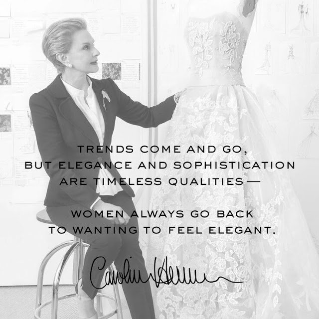 A estilista Carolina Herrera diz que “tendências vêm e vão, mas elegância e sofisticação são qualidades atemporais. E as mulheres devem regatá-las para se sentir elegantes.”
