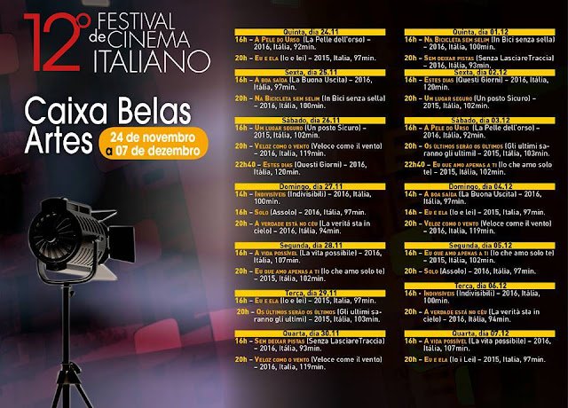 Este ano, o festival terá exibição de duas semanas, até 7 de dezembro, no Cine Caixa Belas Artes e Unibes Cultural. Serão mostradas 16 produções contemporâneas do sempre bom cinema italiano.