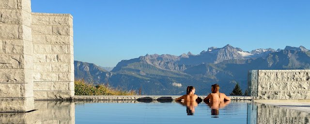 Para quem for à Suíça nesta primavera ou verão, a dica é fazer uma imersão em um cenário de perder o fôlego: um banho de águas termais, a 35º de temperatura, de frente para os alpes suíços.