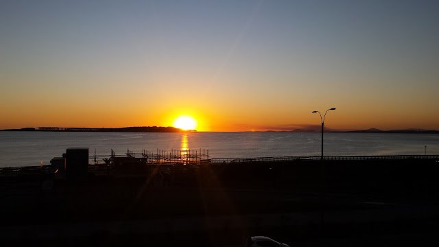 | O pôr do sol capturado do terraço do hotel, no lobby |